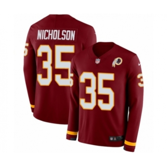 Men's Nike Washington Redskins #35 Montae Nicholson Limited Burgundy Therma Long Sleeve NFL Jersey
