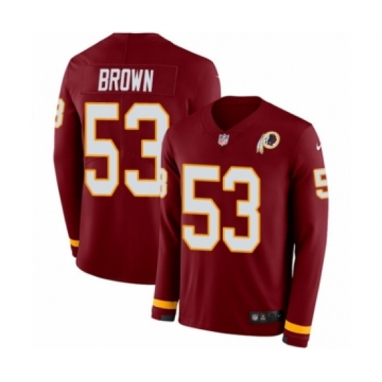 >Men's Nike Washington Redskins #53 Zach Brown Limited Burgundy Therma Long Sleeve NFL Jersey