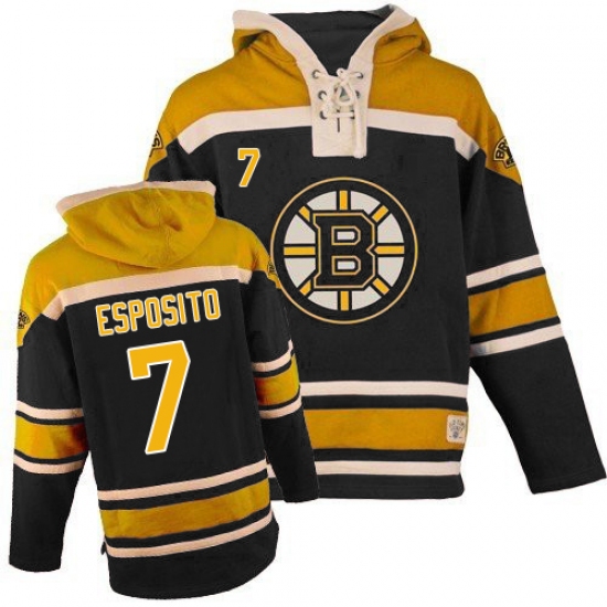 Men's Old Time Hockey Boston Bruins #7 Phil Esposito Premier Black Sawyer Hooded Sweatshirt NHL Jersey
