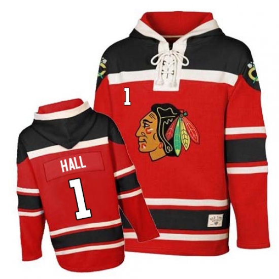 Men's Old Time Hockey Chicago Blackhawks #1 Glenn Hall Premier Red Sawyer Hooded Sweatshirt NHL Jersey