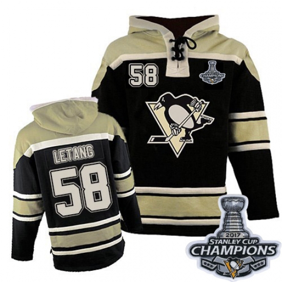 Men's Old Time Hockey Pittsburgh Penguins #58 Kris Letang Premier Black Sawyer Hooded Sweatshirt 2017 Stanley Cup Champions