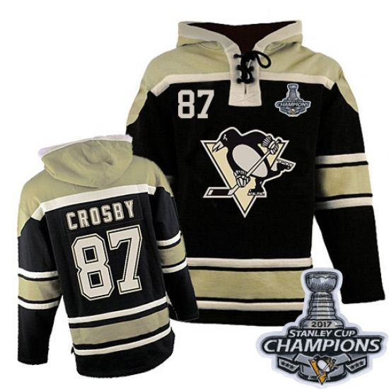 Home>NHL>Pittsburgh Penguins>Sidney Crosby>Men's Old Time Hockey Pittsburgh Penguins #87 Sidney Crosby Authentic Black Sawyer Hooded Sweatshirt 2017 Stanley Cup Champions