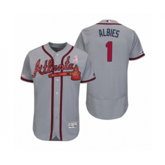 Men's Ozzie Albies Atlanta Braves #1 Gray 2019 Mothers Day Flex Base Authentic Jersey