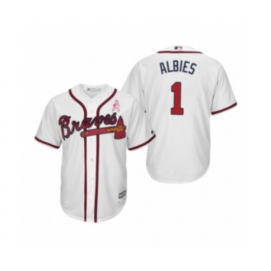 Men's Ozzie Albies Atlanta Braves #1 White 2019 Mothers Day Cool Base Jersey