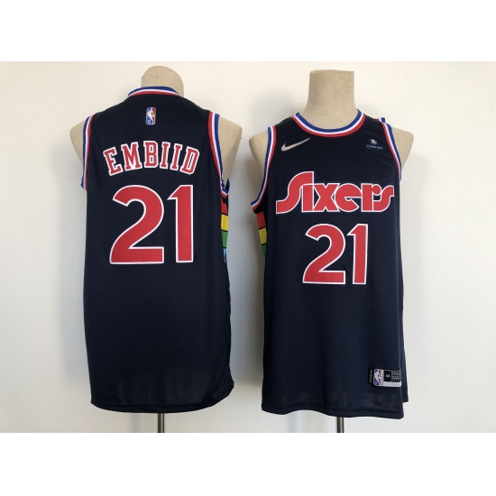 >Men's Philadelphia 76ers #21 Joel Embiid Navy 2021-22 City Ediition Stitched Basketball Jersey