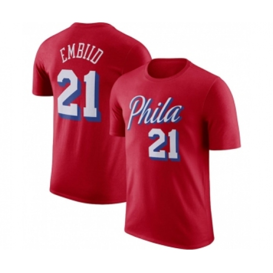 >Men's Philadelphia 76ers #21 Joel Embiid Red 2022-23 Statement Edition Name & Number T-Shirt