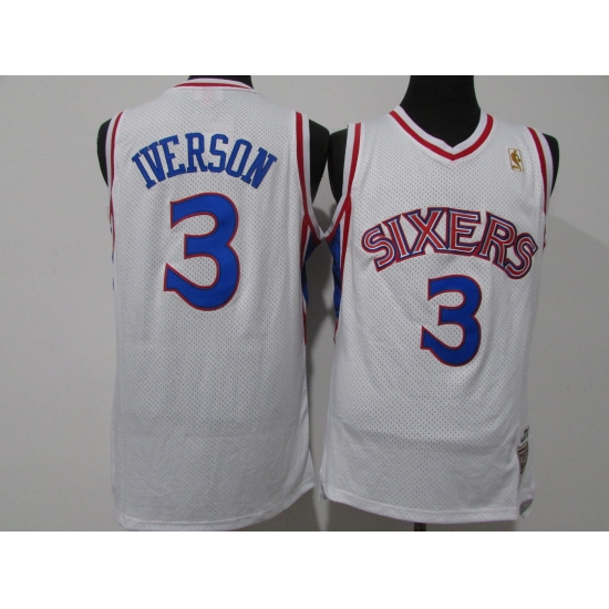 Men's Philadelphia 76ers #3 Allen Iverson White With Cool Base Stitched Baseball Jersey