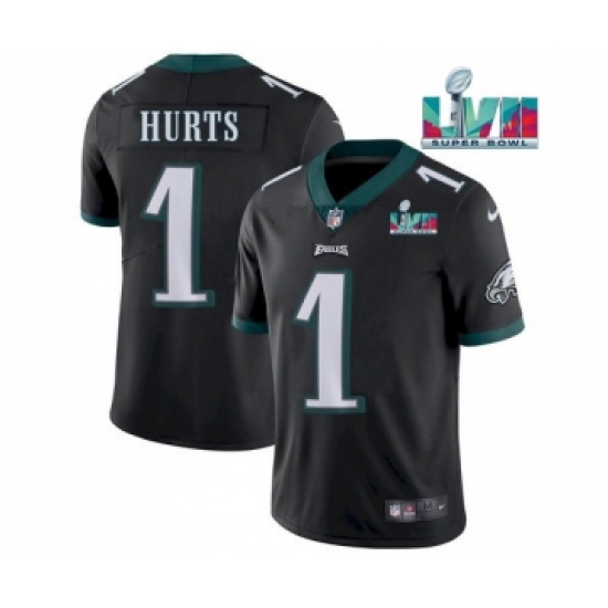 Men's Philadelphia Eagles #1 Jalen Hurts Black Super Bowl LVII Patch Vapor Untouchable Limited Stitched Jersey