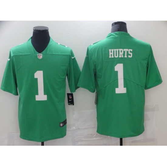 >Men's Philadelphia Eagles #1 Jalen Hurts Limited Green Rush Vapor Untouchable Football Jersey