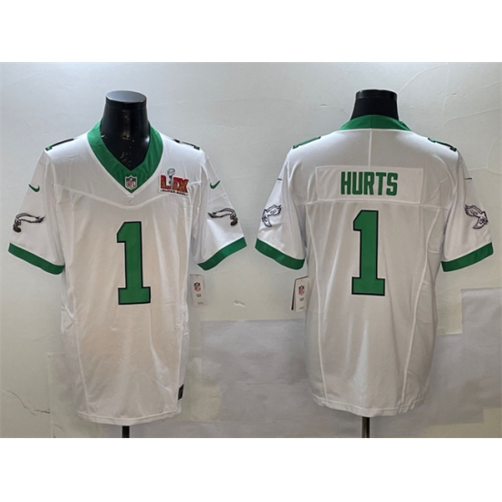 Men's Philadelphia Eagles #1 Jalen Hurts White 2025 Super Bowl LIX F.U.S.E. Vapor Untouchable Limited Stitched Football Jersey