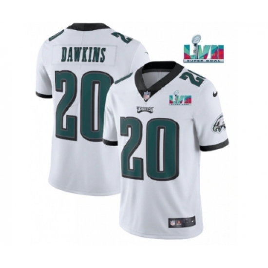 >Men's Philadelphia Eagles #20 Brian Dawkins White Super Bowl LVII Patch Vapor Untouchable Limited Stitched Jersey