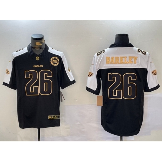 >Men's Philadelphia Eagles #26 Saquon Barkley Black Gold 2024 New F U S E With 3 Star C Stitched Football Jersey 5