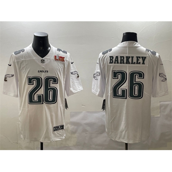 Men's Philadelphia Eagles #26 Saquon Barkley White 2025 Super Bowl LIX Fashion Vapor Untouchable Limited Stitched Football Jersey