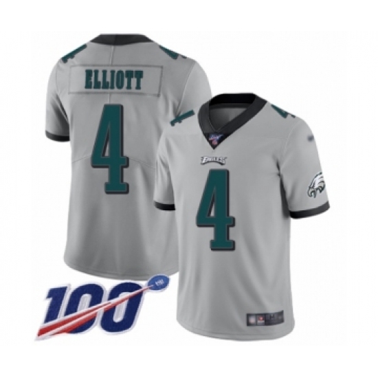 >Men's Philadelphia Eagles #4 Jake Elliott Limited Silver Inverted Legend 100th Season Football Jersey