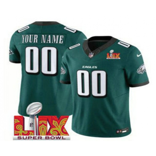 Men's Philadelphia Eagles Customized Green 2025 Super Bowl LIX FUSE Vapor Limited Jersey