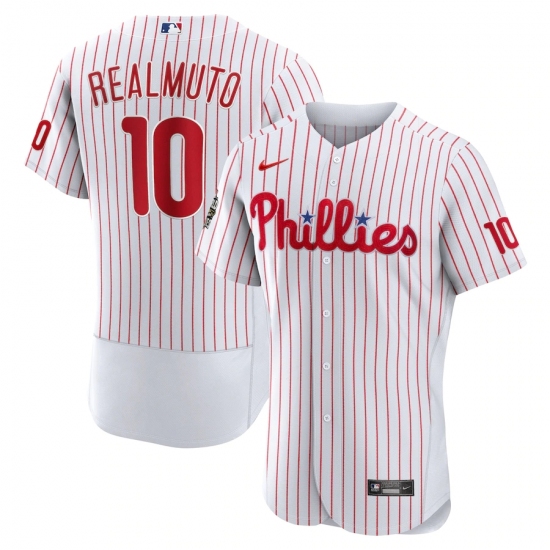 >Men's Philadelphia Phillies #10 J.T. Realmuto Nike White 2022 World Series Home Authentic Player Jersey