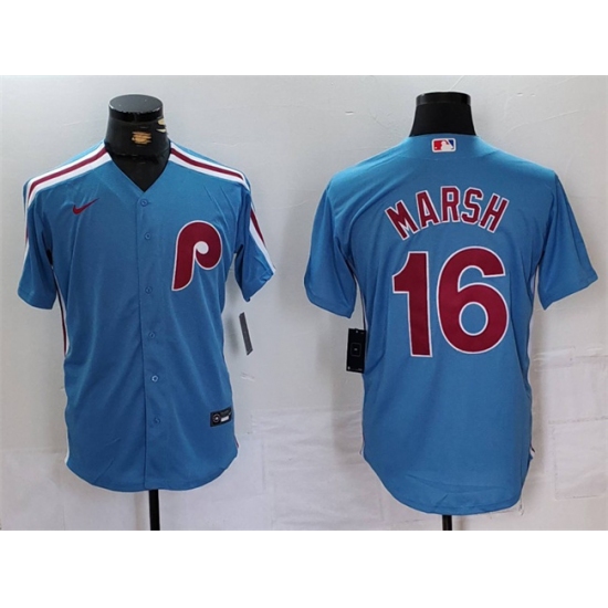 >Men's Philadelphia Phillies #16 Brandon Marsh Blue Cool Base Stitched Jersey