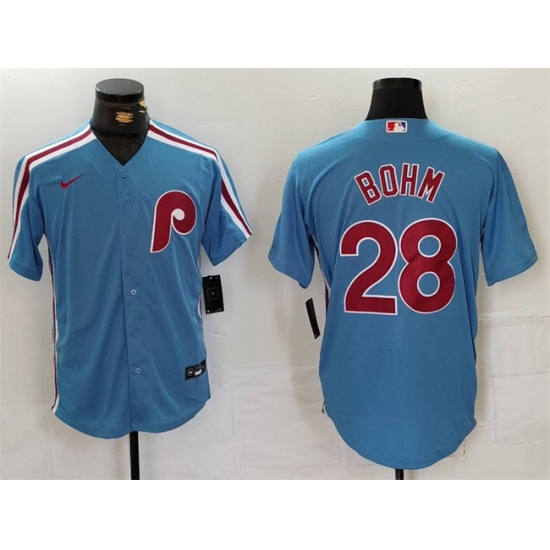 >Men's Philadelphia Phillies #28 Alec Bohm Blue Cool Base Stitched Jersey