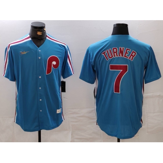 Men's Philadelphia Phillies #7 Trea Turner Blue Cooperstown Throwback Cool Base Nike Jersey