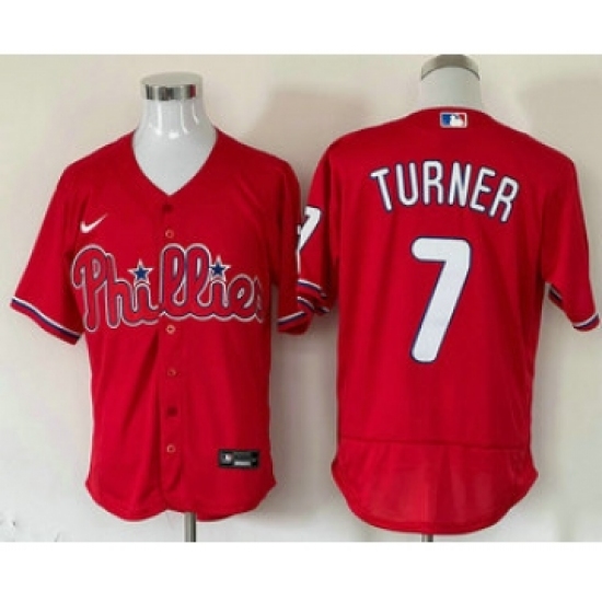 >Men's Philadelphia Phillies #7 Trea Turner Red Stitched MLB Flex Base Nike Jersey