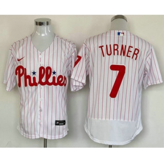 >Men's Philadelphia Phillies #7 Trea Turner White Stitched MLB Flex Base Nike Jersey