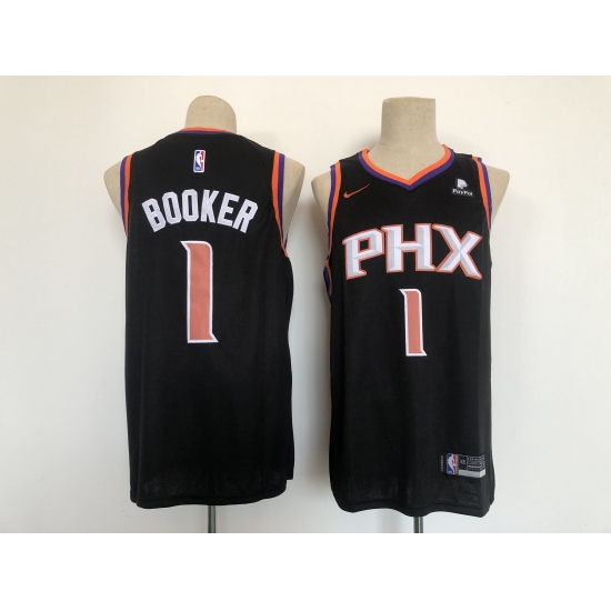 >Men's Phoenix Suns #1 Devin Booker Swingman Black Basketball Jersey