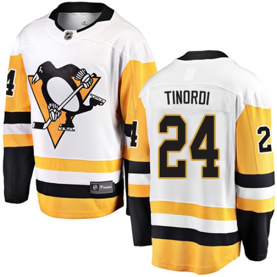 Men's Pittsburgh Penguins #24 Jarred Tinordi Fanatics Branded White Away Breakaway NHL Jersey