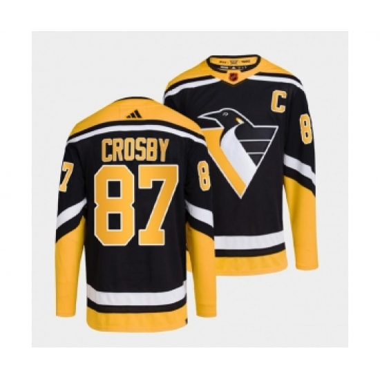 Men's Pittsburgh Penguins #87 Sidney Crosby Black 2022-23 Reverse Retro Stitched Jersey