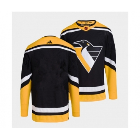 >Men's Pittsburgh Penguins Blank Black 2022 Reverse Retro Stitched Jersey
