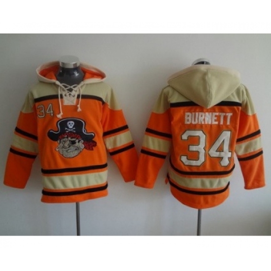 >Men's Pittsburgh Pirates #34 A. J. Burnett Orange MLB Baseball Hoodie