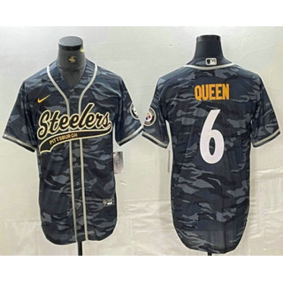 Men's Pittsburgh Steelers #6 Patrick Queen Camo With Cool Base Stitched Baseball Jersey