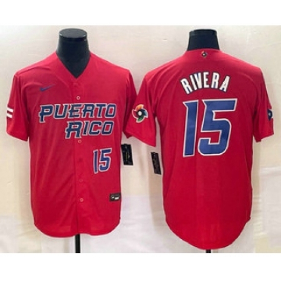 Men's Puerto Rico Baseball #15 Emmanuel Rivera 2023 Red World Classic Stitched Jersey