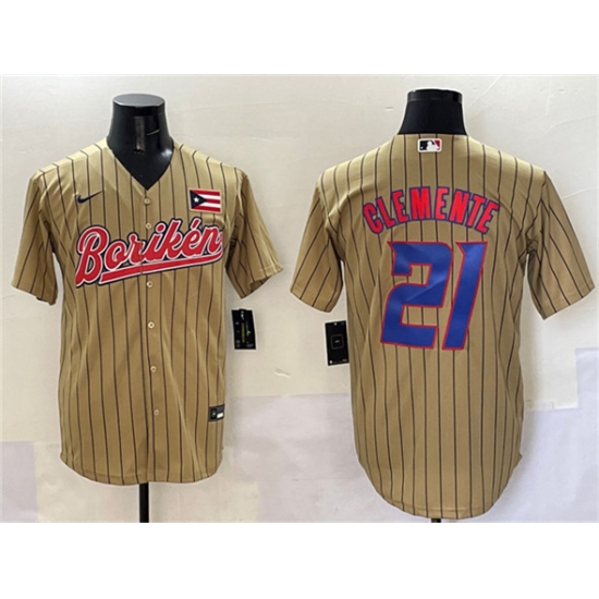 Men's Puerto Rico Baseball #21 Roberto Clemente Tan 2023 World Baseball Classic Stitched Jersey