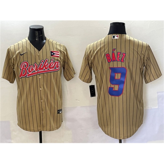 Men's Puerto Rico Baseball #9 Javier Baez Tan 2023 World Baseball Classic Stitched Jersey