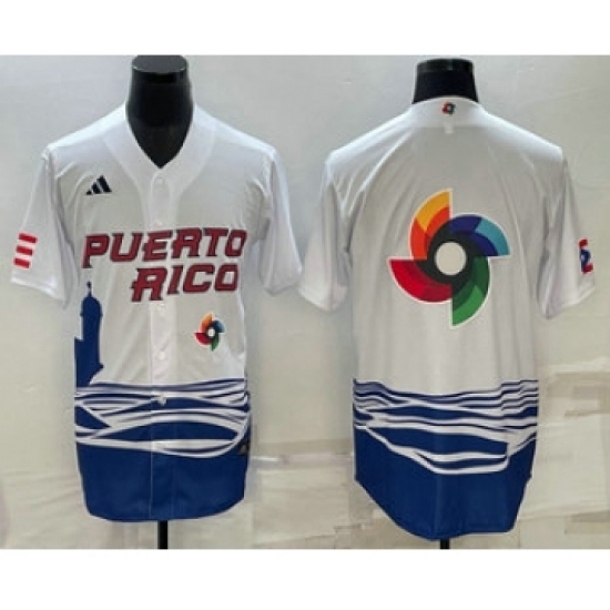 Men's Puerto Rico Baseball Big Logo White 2023 World Baseball Classic Stitched Jerseys