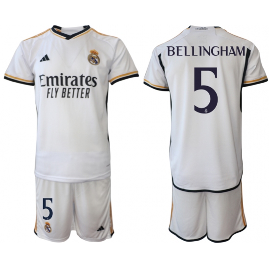 Men's Real Madrid #5 Bellingham 2023-24 White Home Soccer Jersey