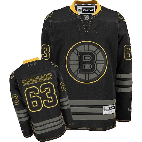 Men's Reebok Boston Bruins #63 Brad Marchand Premier Black Ice NHL Jersey