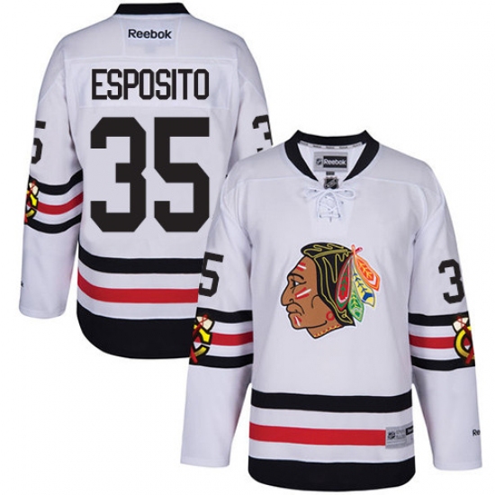 Men's Reebok Chicago Blackhawks #35 Tony Esposito Premier White 2017 Winter Classic NHL Jersey