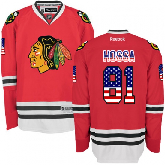 Men's Reebok Chicago Blackhawks #81 Marian Hossa Premier Red USA Flag Fashion NHL Jersey