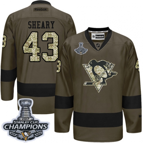 Home>NHL>Pittsburgh Penguins>Conor Sheary>Men's Reebok Pittsburgh Penguins #43 Conor Sheary Premier Green Salute to Service 2017 Stanley Cup Champions NHL Jersey