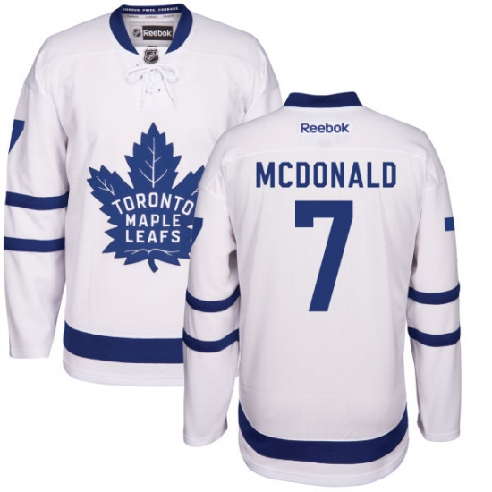 Home>NHL>Toronto Maple Leafs>Lanny McDonald>Men's Reebok Toronto Maple Leafs #7 Lanny McDonald Authentic White Away NHL Jersey