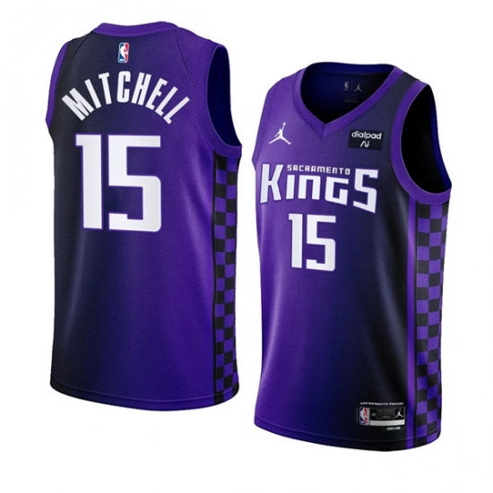 >Men's Sacramento Kings #15 Davion Mitchell Purple 2023-24 Statement Edition Swingman Stitched Jersey