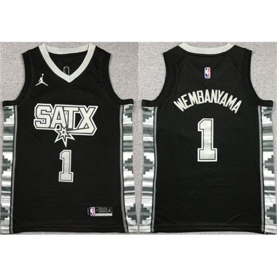 Men's San Antonio Spurs #1 Victor Wembanyama Black Statement Edition Stitched Jersey