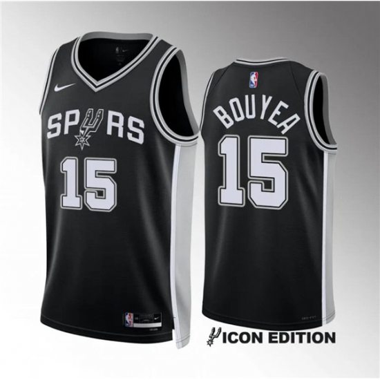 >Men's San Antonio Spurs #15 Jamaree Bouyea Black Icon Edition Stitched Basketball Jersey