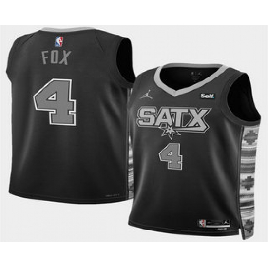 >Men's San Antonio Spurs #4 DeAaron Fox Black 2025 Statement Edition Stitched Jersey