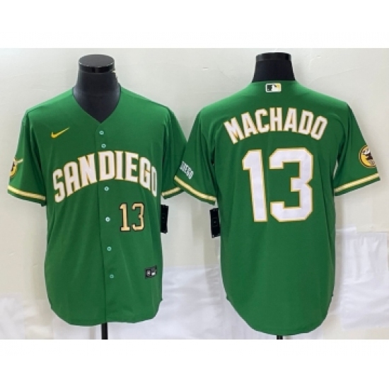 Men's San Diego Padres #13 Manny Machado Green Cool Base Stitched Baseball Jersey 1