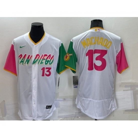 Men's San Diego Padres #13 Manny Machado White Number 2022 City Connect Flex Base Stitched Jersey