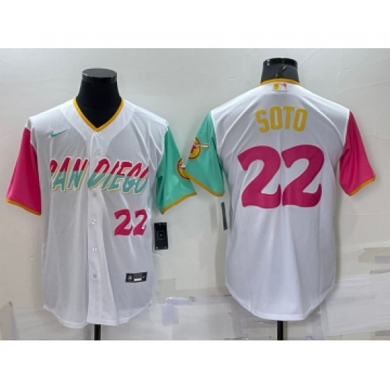 >Men's San Diego Padres #22 Juan Soto Number White 2022 City Connect Cool Base Stitched Jersey