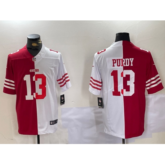 Men's San Francisco 49ers #13 Brock Purdy Red White Split Vapor Limited Stitched Jersey