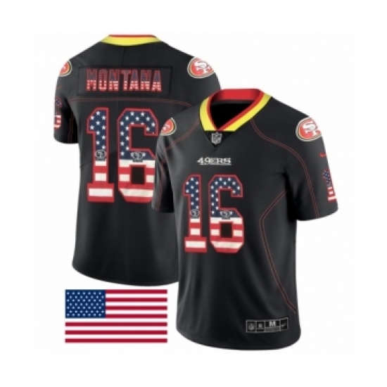 Men's San Francisco 49ers #16 Joe Montana Limited Black Rush USA Flag Football Jersey